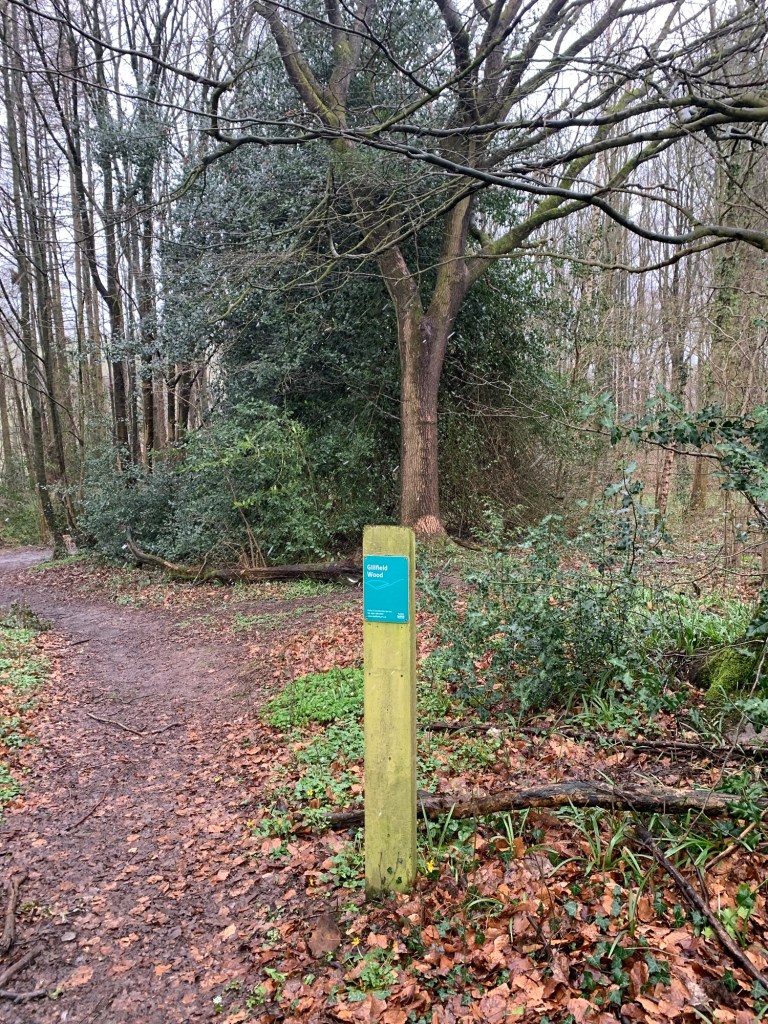 The lane soon becomes a track and after a metal gate where the tracks fork, we take the right fork and head across fields to Gillifield Woods.