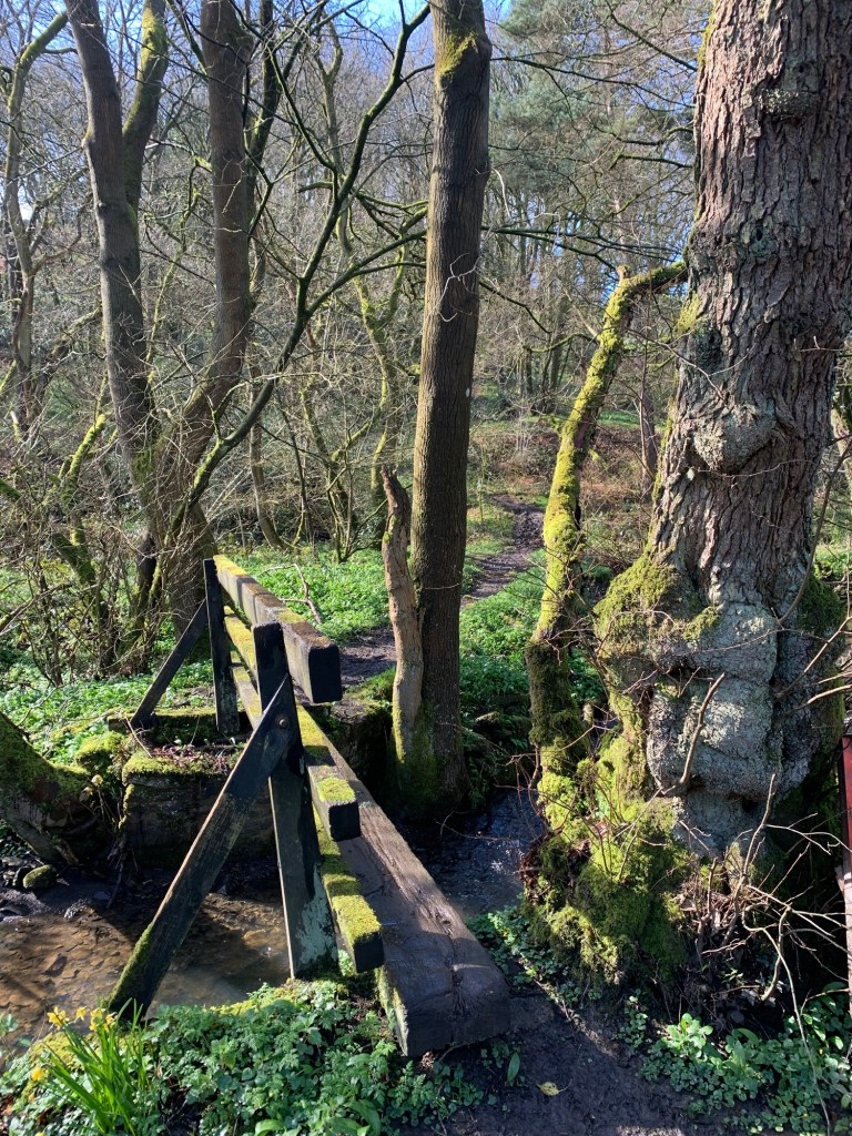 Our path which lies between the two, takes us into Holmesfield Park Woods and we realise too late, that we’ve missed a hall in Holmesfield but we’re happy to leave that for another day.
