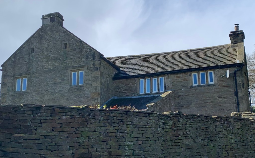 and uphill on the opposite side on a steep but easy to follow path which brings us to Fanshawe Gate ( road) and the second hall of the day, Fanshaw Gate Hall.