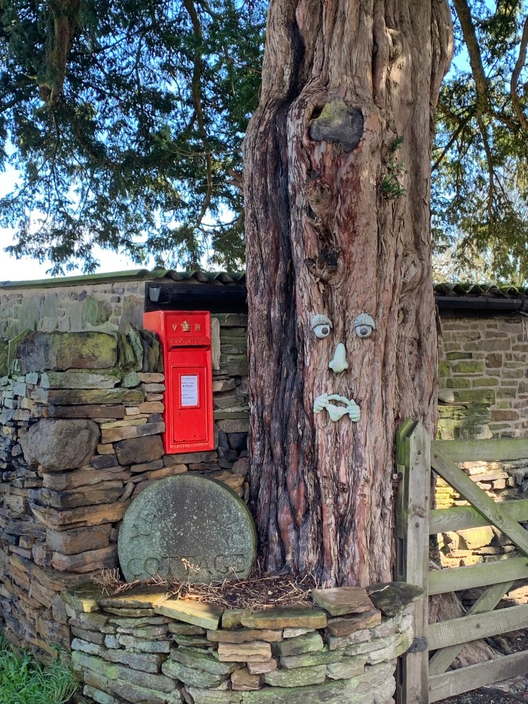 and, always worth a mention, there is a Victorian letter box. This one is right next to a tree that looks straight out of J R R Tolkien and strangely enough, that’s not the only Tolkienesque tree we’ll be passing today. But more of that later.