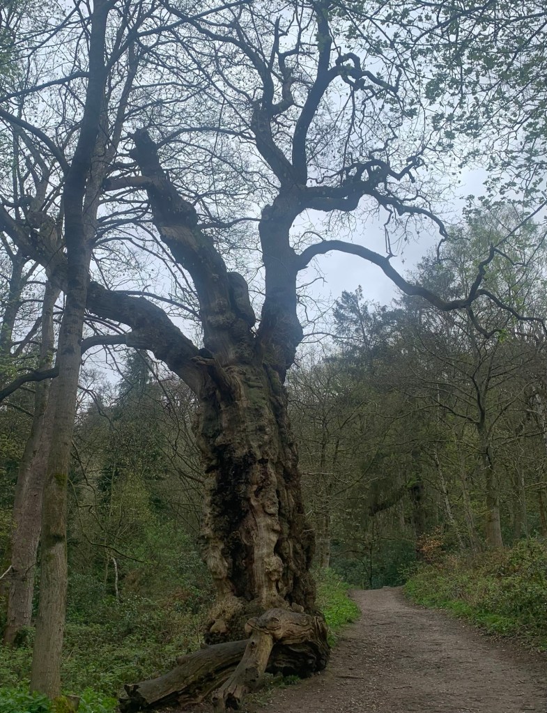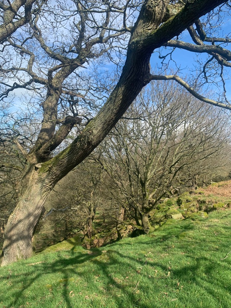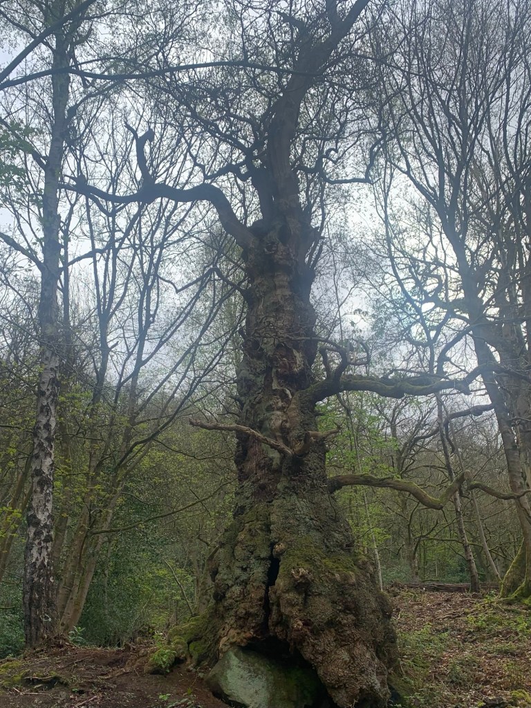 As we gain height through Stand Wood we notice a number of fascinating and very ancient looking trees and on further investigation it seems there was medieval woodland here well before Joseph Paxton came along to plant and sculpt the landscape for the Devonshires.