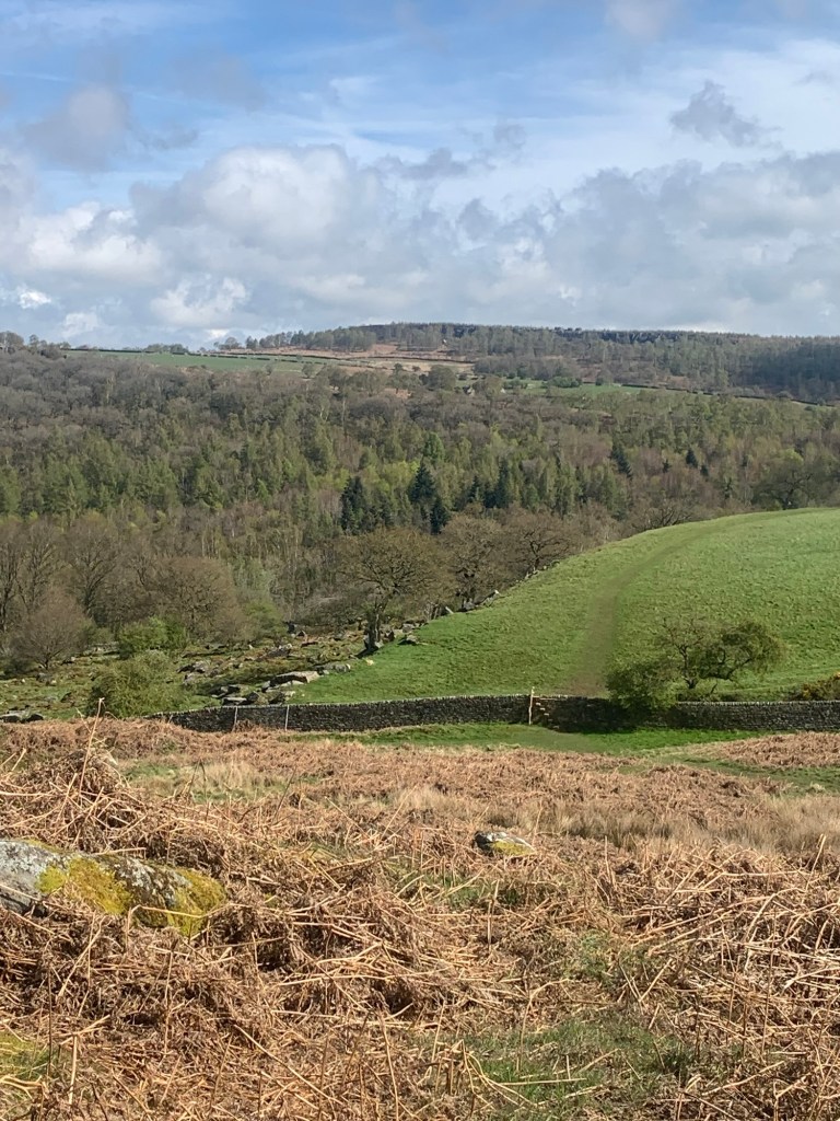 There are some very high step stiles in the early part of the walk and we had an issue with cattle today but the section from the Robin Hood onwards the walk is mainly on open moorland and so more suitable although of course you would need to keep an eye open for deer, sheep and cows as always.