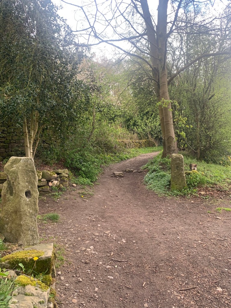 We are soon out of Stand Wood altogether and, at a locked gate we follow the path alongside the wall to the left, climbing a vertiginous stile and descending into more varied vegetation and (maybe?)the inklings of a gritstone escarpment.