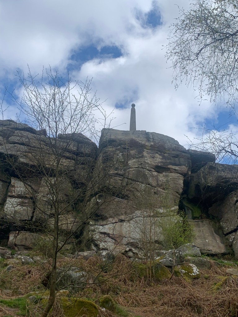 we eventually find a way to scramble up onto the top of the edge and then back track along the top to get a closer look at the Peak District’s answer to Nelson’s Column.