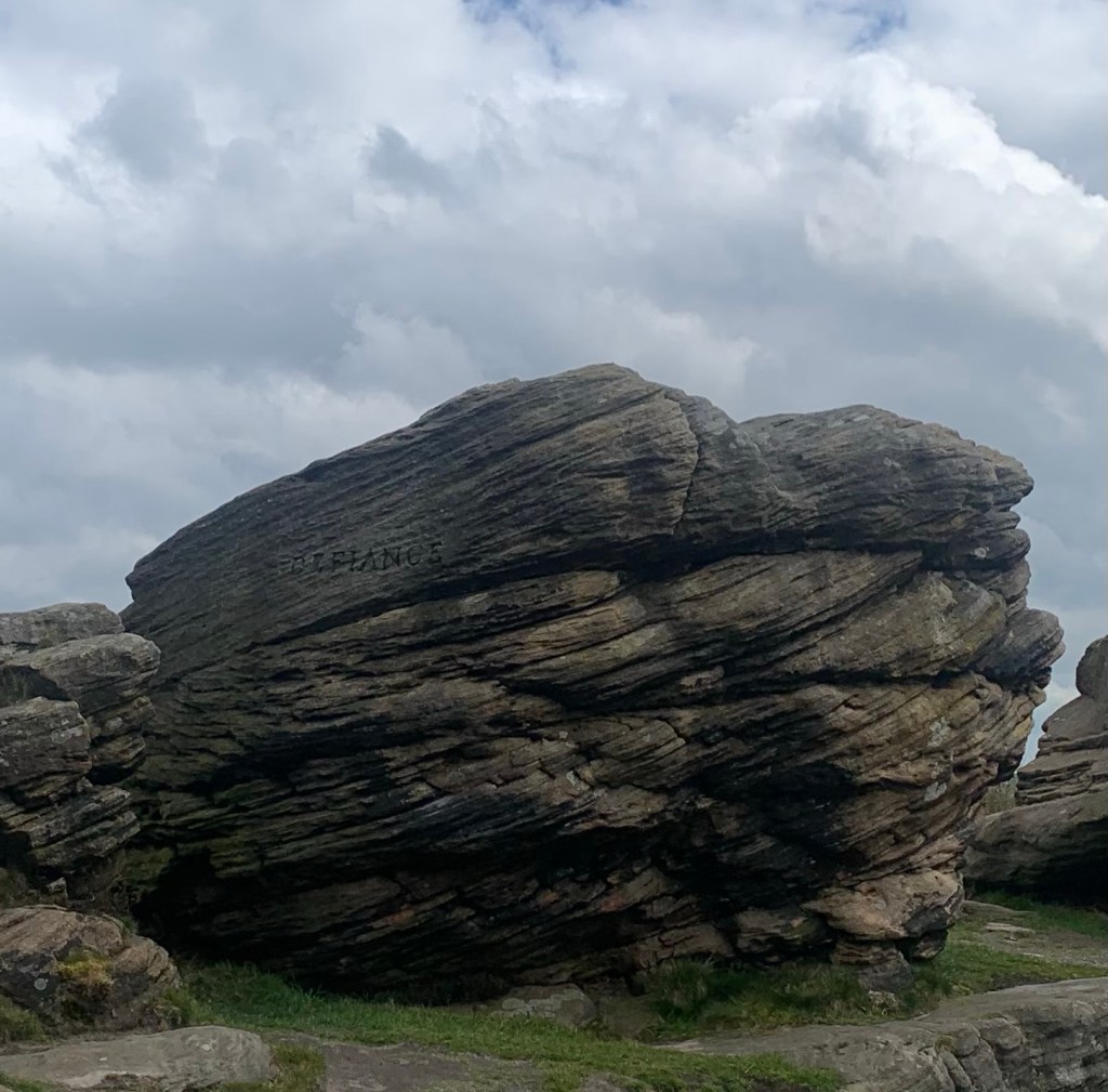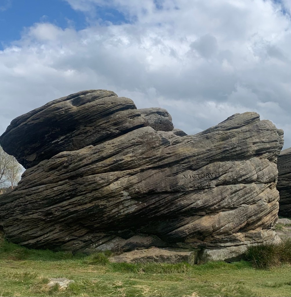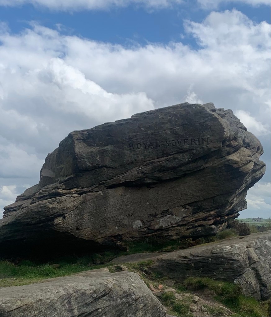 The same guy who masterminded the monument, a certain John Brightman, is also credited with carving the names of three of Nelson’s flagships from the Battle of Trafalgar onto three large gritstone outcrops which stand just back from the edge itself.