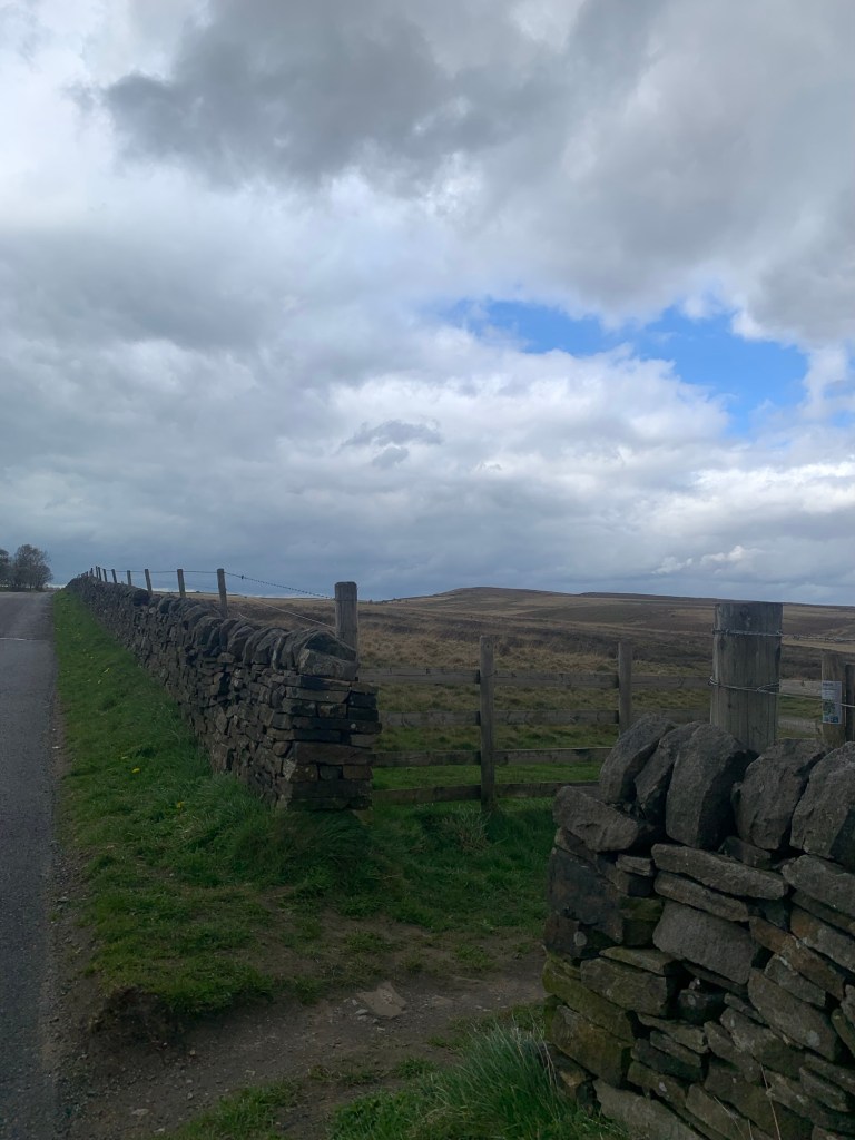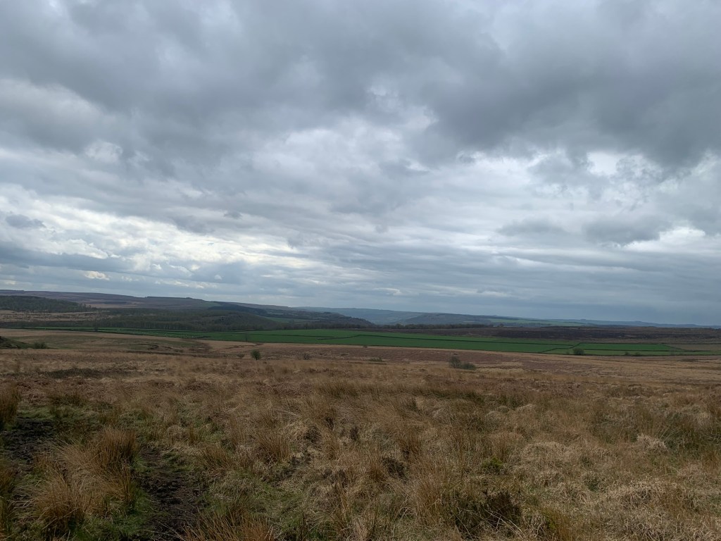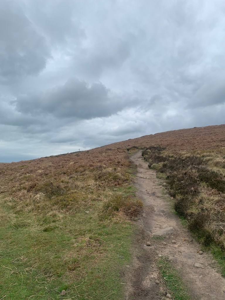 The scenery and the weather has changed at the same time and we have exchanged pretty woodland and grassy paths with blue skies for much bleaker moorland and a threatening greyness overhead.