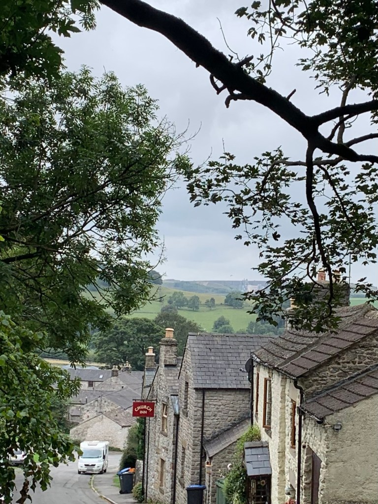 It’s absolutely buzzing in Monyash after the quiet of Flagg and we’re glad to get a seat inside the cafe as it starts to rain partway through our sandwiches and PINTS OF TEA. (Yes!!!!) Then , just as we have consumed quite enough, we’re practically forced by the weather into prolonging our stay whilst we also eat cake.
