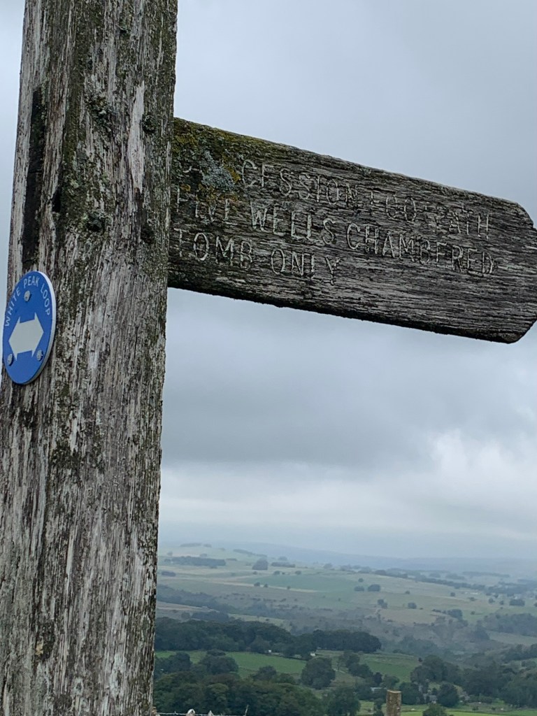 At Pillwell Gate where there’s a sign to the ancient burial chamber of Five Wells, a favourite place of mine, well worth a detour if you’re into ancient sites.