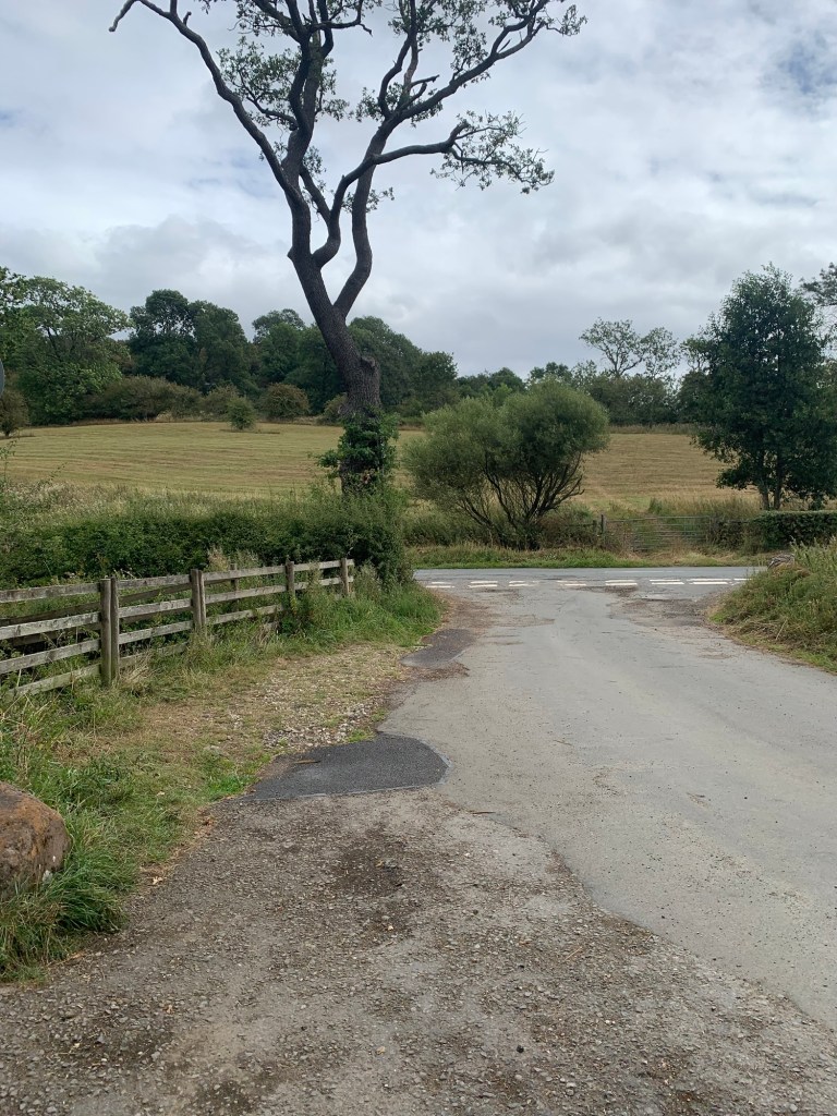 As the path emerges onto the road we turn left and in no time at all we have a pavement to walk along.
