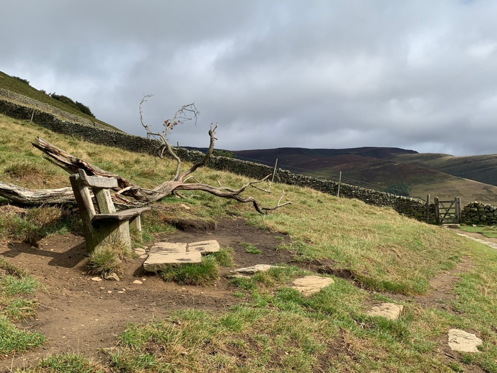 However, the Pennine Bridleway heads straight ahead here and it looked so inviting that we continued along it, intending to take the footpath partway along on the left which passes near High Stool Farm and into the village that way.