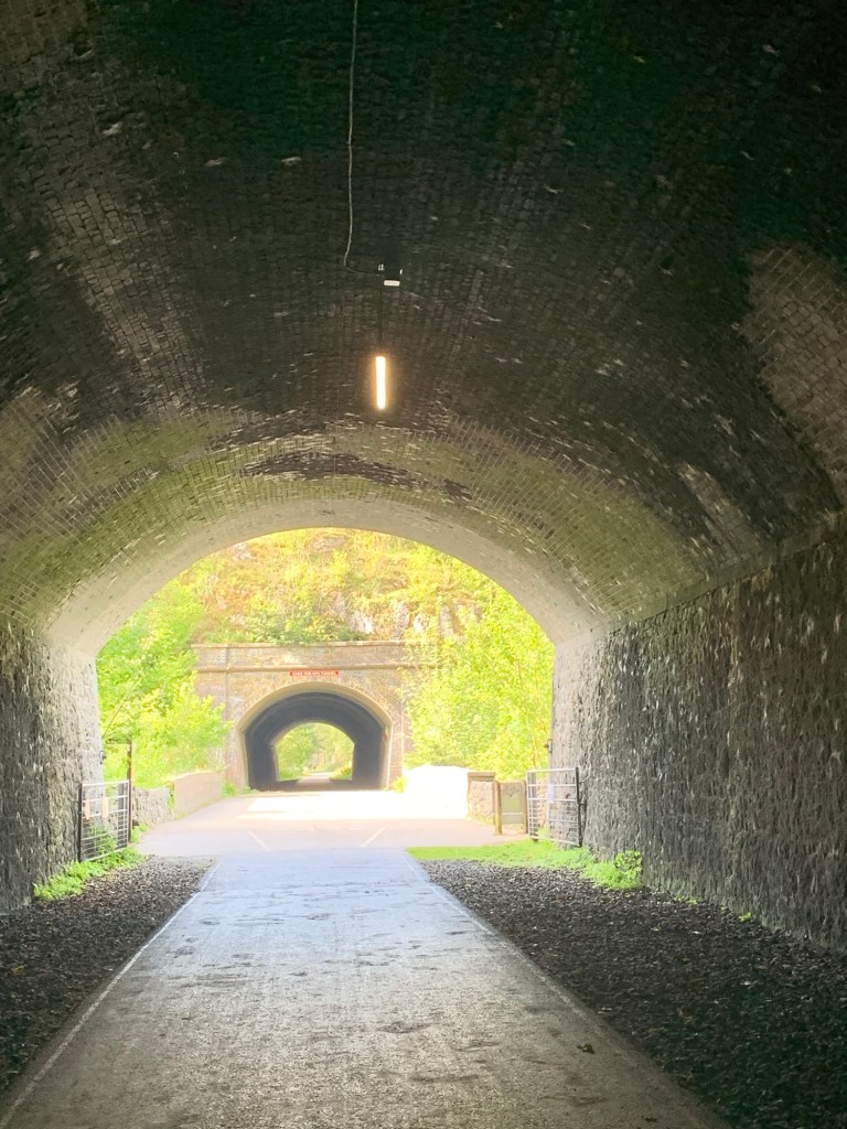We’re soon passing the imposing remains of the lime kilns ( bats live here) and although we’re probably only following the trail for a couple of km, it’s choc-full of interest with bridges, tunnels, astonishing glimpses of limestone cliffs and the river Wye winding beneath us.