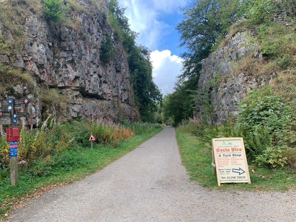 The road to Wormhill turns right off the main road at Millers Dale and if we followed it briefly uphill we’d get to the Refreshment Room cafe and the car park for the Monsal Trail.
