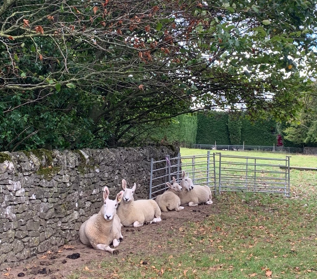 We walk along the Main Road ( the only road?) and pass a number of farms, a small sundial to commemorate the millennium and a few sheep with sticky up ears (taking a rest from all the excitement?) There doesn’t seem to be a lot going on, but it’s certainly very peaceful.