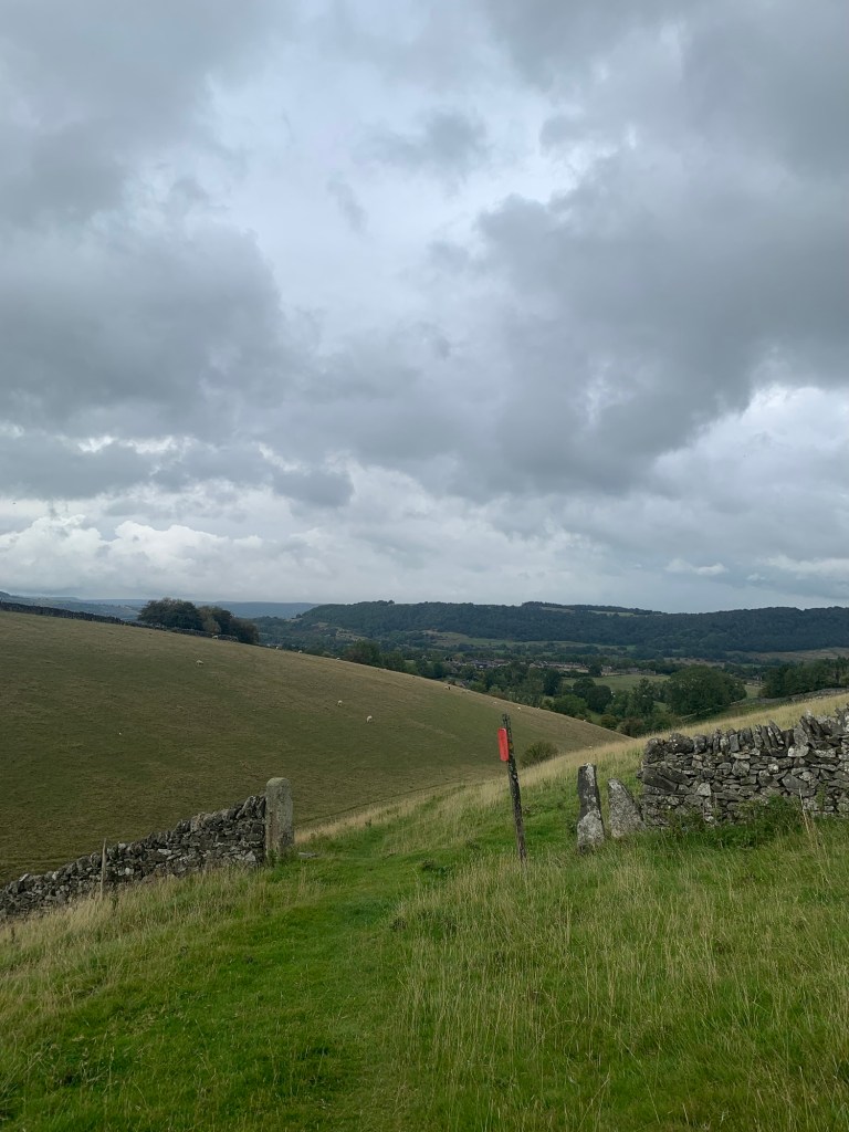 Unlike the footpath into Flagg, this footpath is a treat. It’s not particularly well defined but it’s always possible to spot the next stile across the next field, the farmer has even painted the wall around some of the stiles white to help people spot the way.